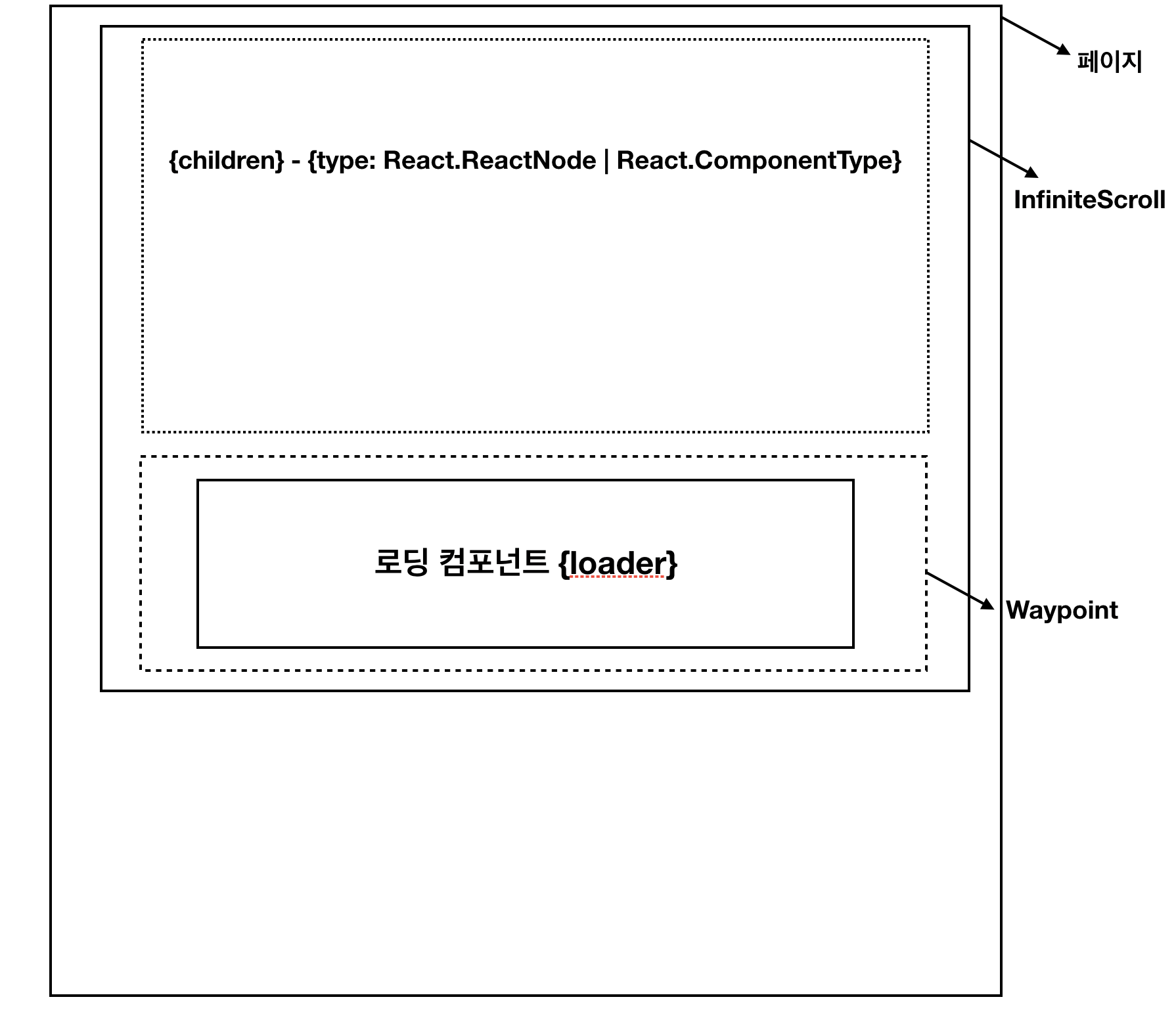 InfiniteScroll 컴포넌트의 구조는 다음과 같습니다.