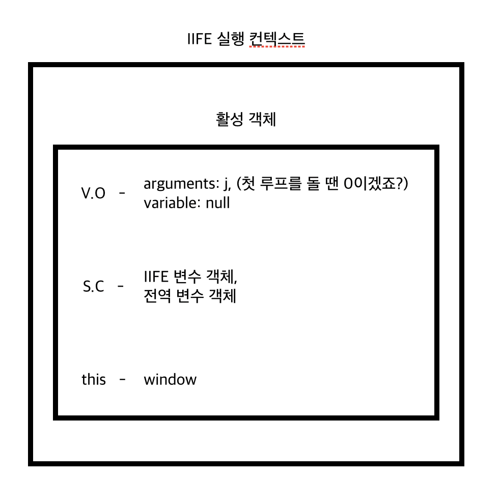 이제 실제 루프를 돌며, IIFE가 호출되고 IIFE의 컨텍스트 역시 생성이 됩니다.