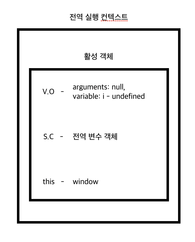 하지만, 자신의 변수 객체에 i라는 프로퍼티를 찾을 수 없는 상황입니다.
