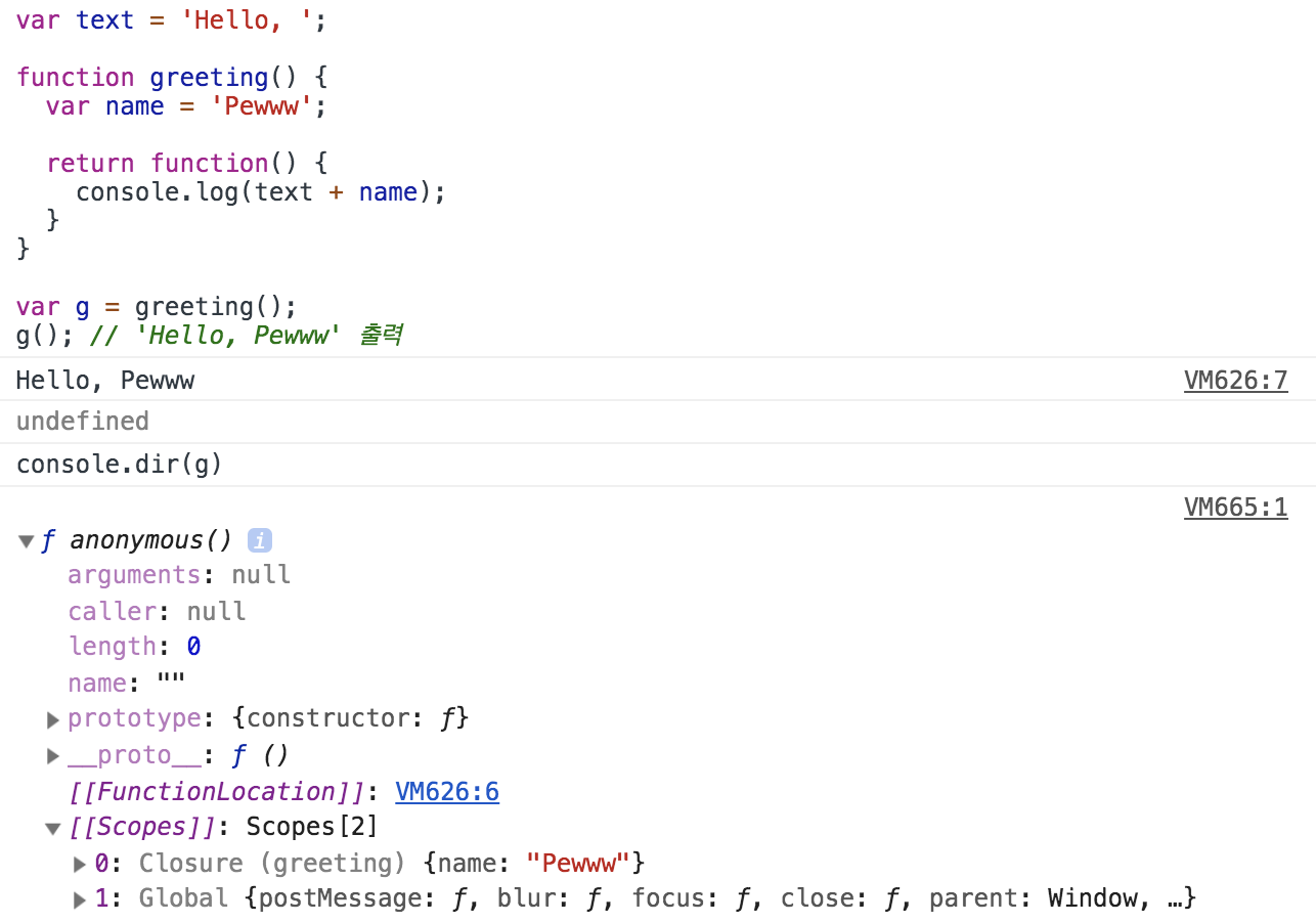 g(); // 'Hello, Pewww' 출력